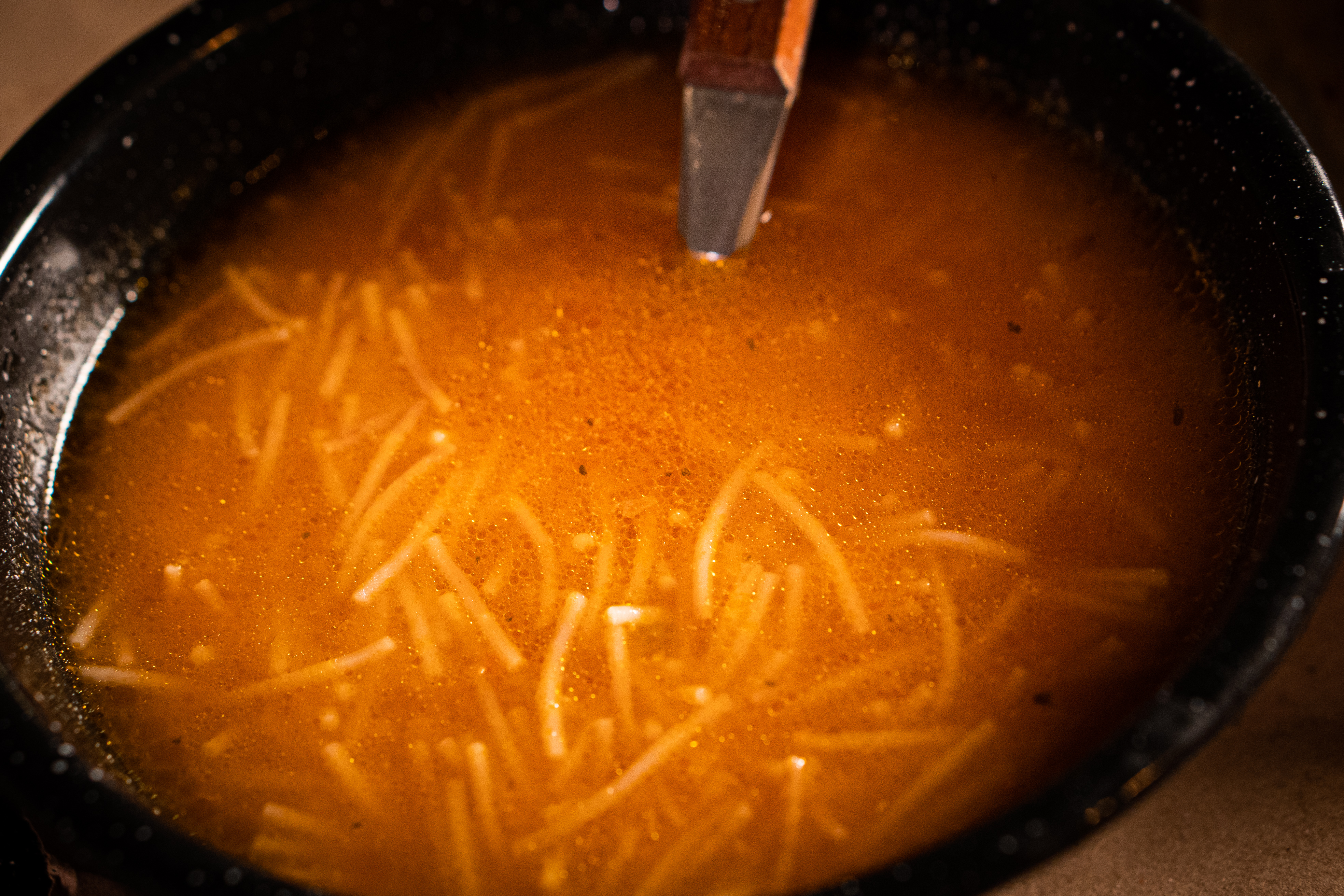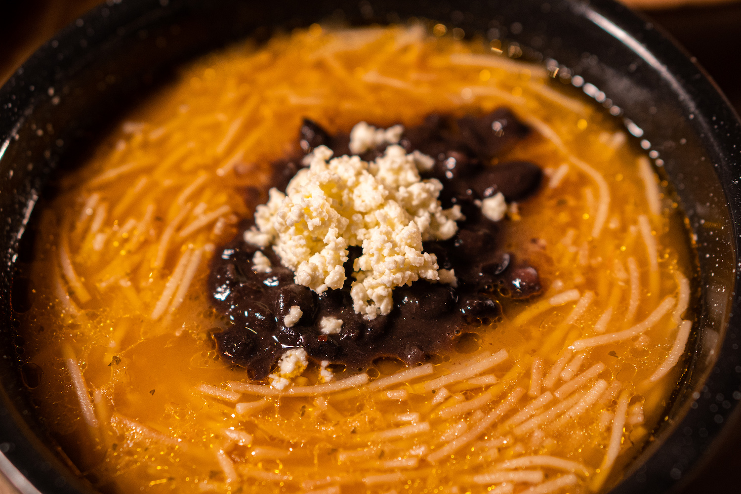 Sopa de fideo con frijol en bola.