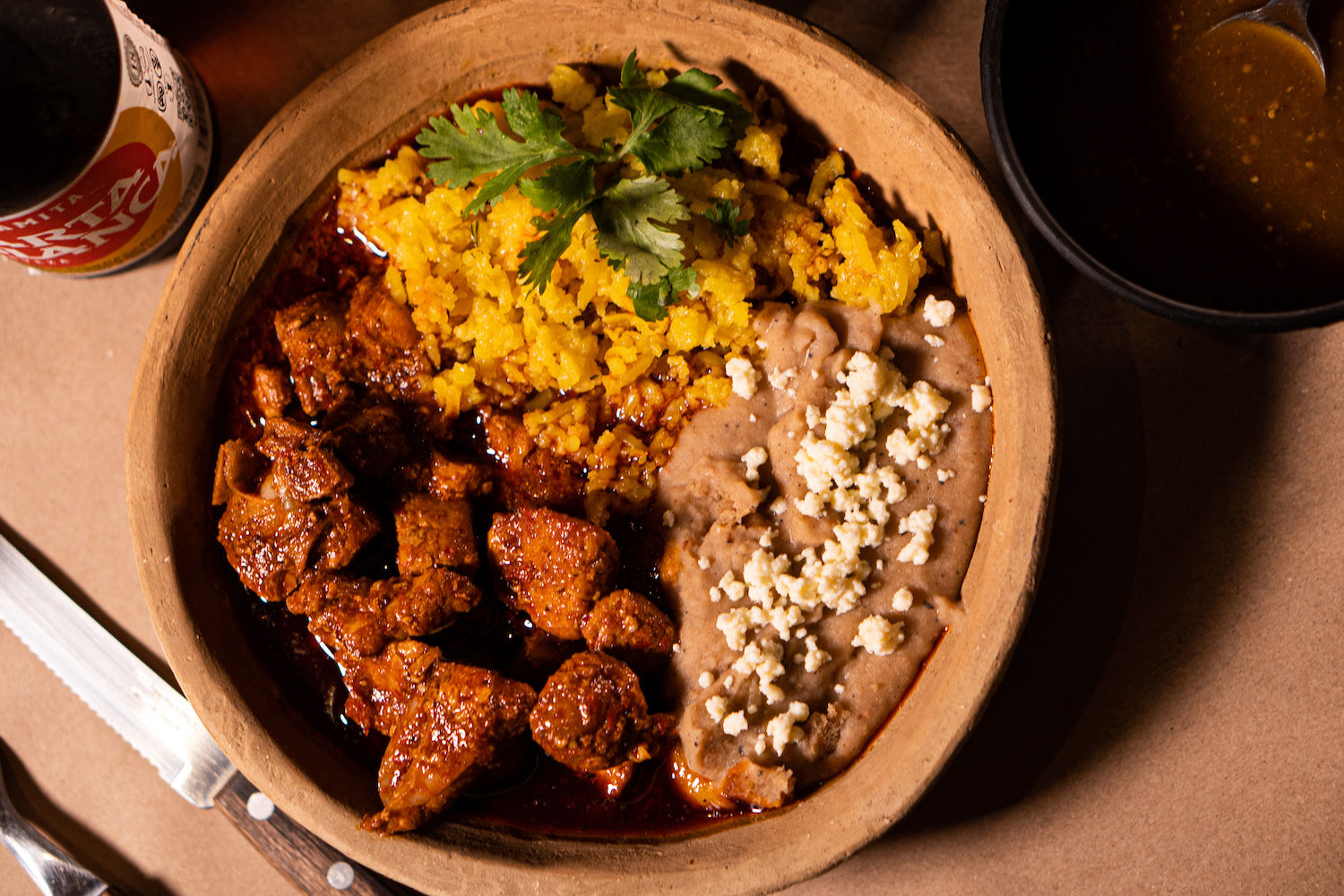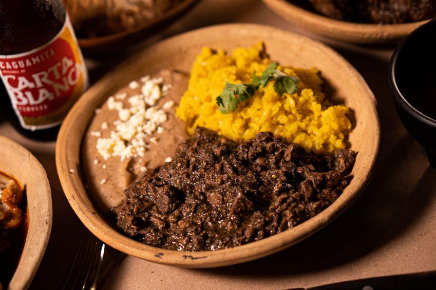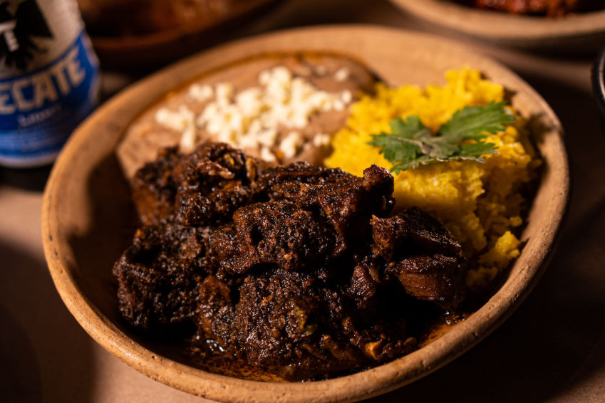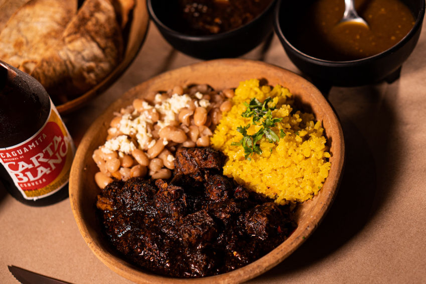 Frijoles con asado de puerco.